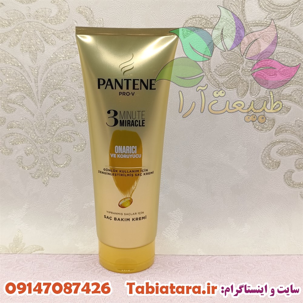 این ماسک مو ترمیم کننده و محافظت کننده در 3 دقیقه موهای آسیب دیده شما را صاف میکند. با استفاده از فناوری Pro-Vitamin B5 از ریزش موهایتان جلوگیری کرده و از مو در برابر آسیب محافظت می نماید. این ماسک مو قدرت این را دارد که آسیب مو را به صورت عمقی ترمیم کند. ماسک مو پنتن در دو حجم 150 میل و 200 میل به بازار عرضه میشود.